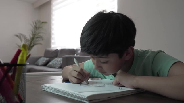 Joven trabando y estudiando es su escritorio y su laptop ingresando a un portal de Inteligencia Artificial. Las letras AI neon se visualizan en el monitor de su notebook. Su planta y teléfono móvil.