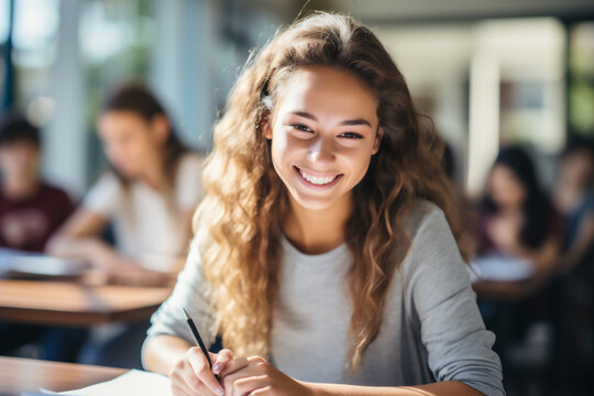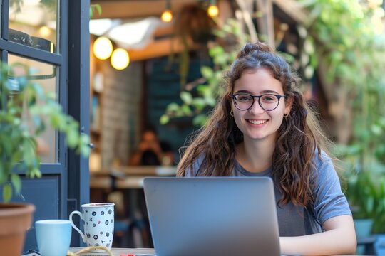 Joven chica feliz trabajando en un cowork. Generativa ia