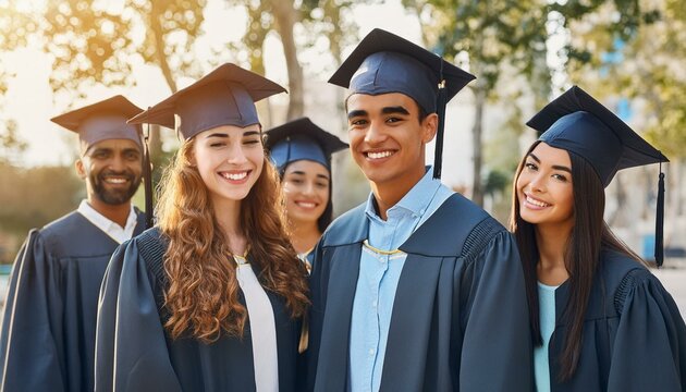 Graduation ceremony with students in caps and gowns, celebrating achievements, joyful moment