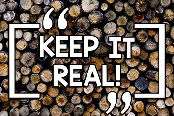 Writing note showing Keep It Real. Business photo showcasing Be yourself honest authentic genuine tell the truth always Wooden background vintage wood wild message ideas intentions thoughts