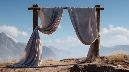 Scenic Wedding Arch with Flowing Fabric on a Mountain Vista - Serene Backdrop