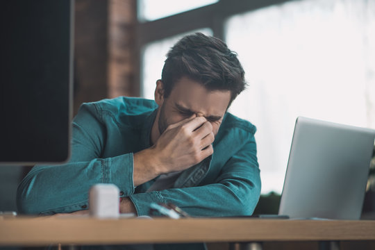 Exhausted man raising awareness for myalgic encephalomyelitis