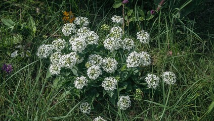 Sweet alyssum white flowers - Latin name - Lobularia maritima (Alyssum maritimum)