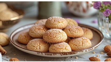 Delicious homemade Sardinian amaretti cookies on a rustic plate