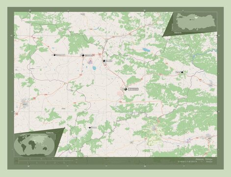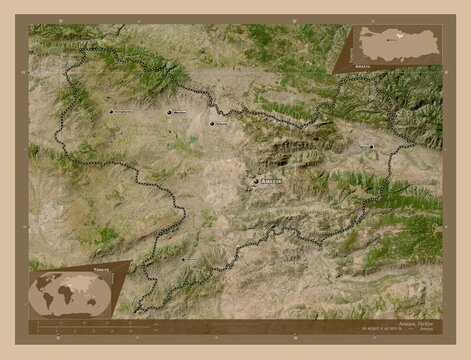 Amasya, Turkiye. High-res satellite. Labelled points of cities