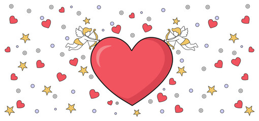 Cute Valentine's Day Background with Heart, Cupids, and Stars
