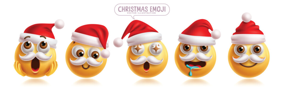 Santa claus emoji character set. Christmas santa emojis clip art characters in surprise, shy, amaze, drooling, smiling, happy and funny facial expression in red hat collection. Vector illustration