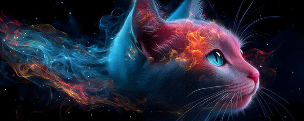 Abstract Digital Art of a Cat's Profile with Cosmic Background