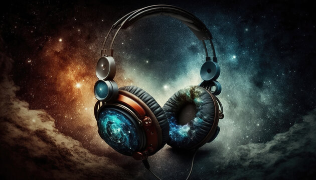 cool looking headphones in space, imprssive artwork, generative ai technology