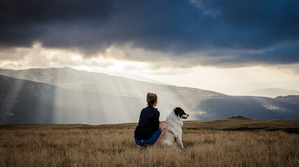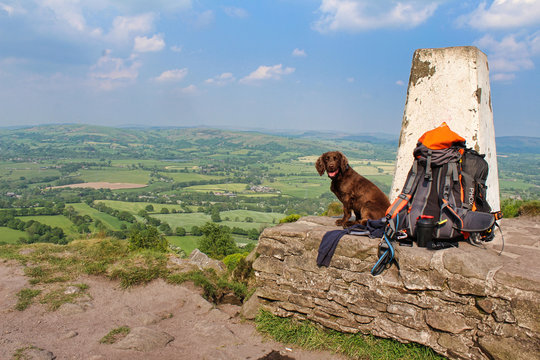 Trig point with amazing countryside view from the top of bosley cloud with dog