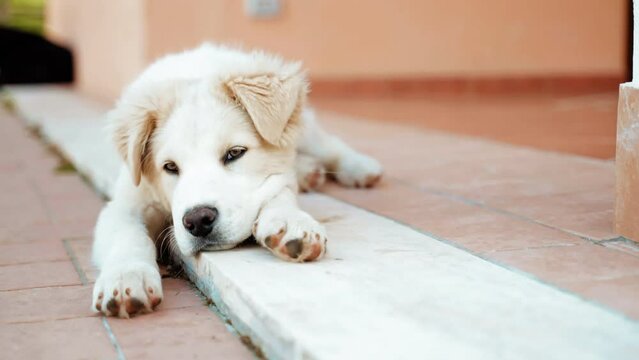 Puppy with open mouth and big eyes with funny face. Created with Generative AI.