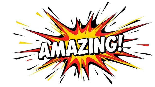 Comic book style explosion burst with amazing text in bold letters. Colorful starburst design with radiating lines on white background for graphic design projects.