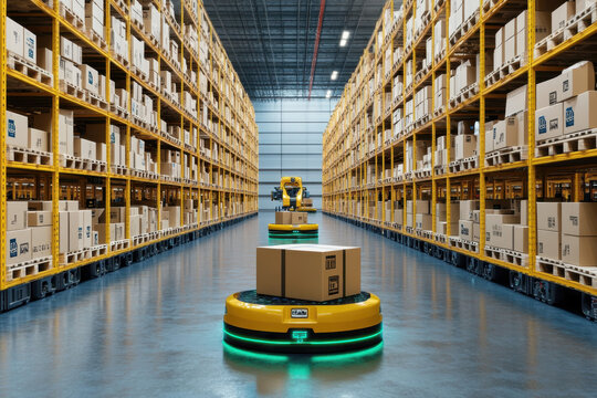 AGV (Automated guided vehicle) in warehouse logistic and transport.