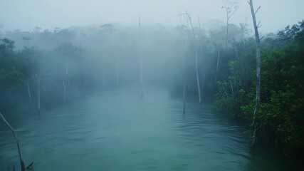 Misty Amazon River Basin: Tranquil Foggy Forest