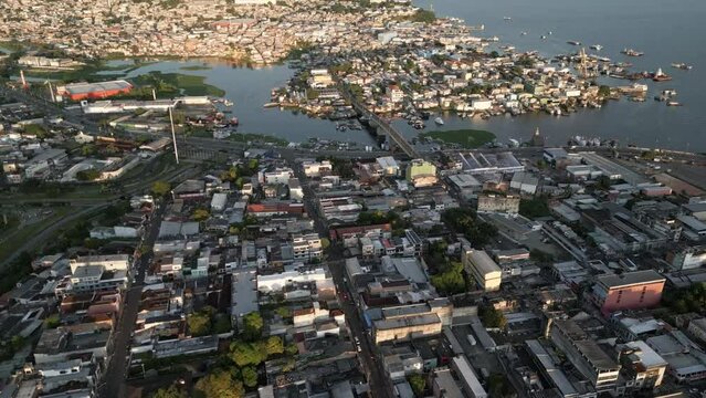 Manaus Brazil Amazonia rainforest capital view of metropolitan area with rio Amazonia in the amazon rainforest aerial drone footage