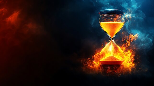 Hourglass Blaze Time Flowing Burning Clock Countdown Sands of Time Flames Red and Blue Hues Reminder