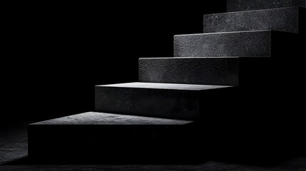 Conceptual image of a minimalist staircase with steps that seem to disappear into a dark mysterious void creating a sense of ambiguity and the unknown