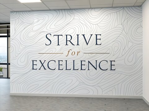 Inspiring strive for excellence motivational quote on a textured white office wall
