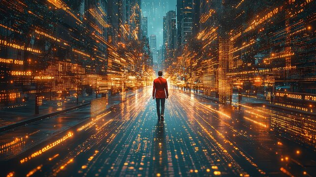 Businessman overlook city horizon for new opportunity, strategy. Preparing for challenge. Entrepreneur following goal. Ai generated business concept illustration
