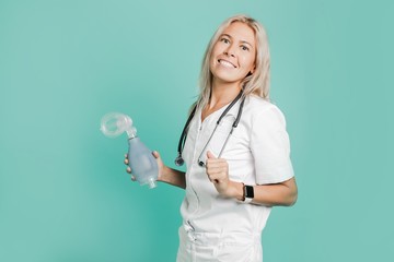 isolated picture of bag valve mask for postitive pressure ventilation and give oxygen supplement for patient with difficulty breathing. medical airway device concept