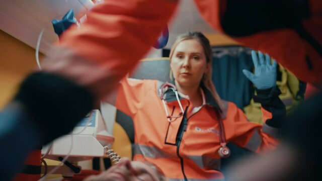 EMS Paramedics Team Provide Medical Help to Injured Patient on the Way to Hospital