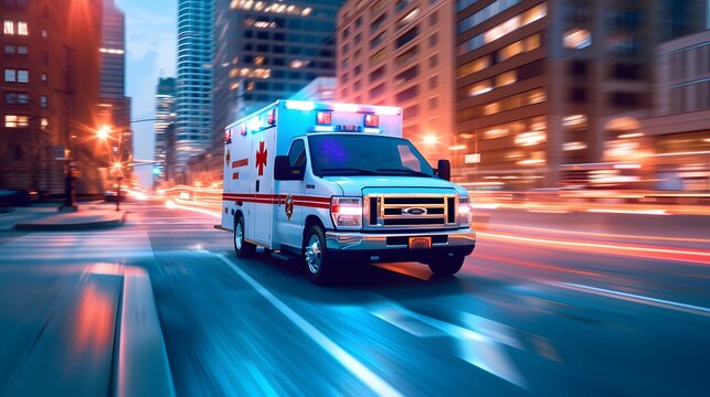 Blurred motion action view of an ambulance responding to the scene of an emergency.