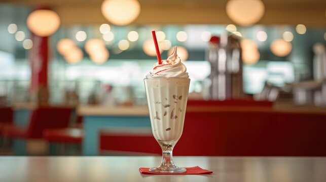 Hazelnut Milkshake in a classic American Diner - food photography - made with Generative AI tools