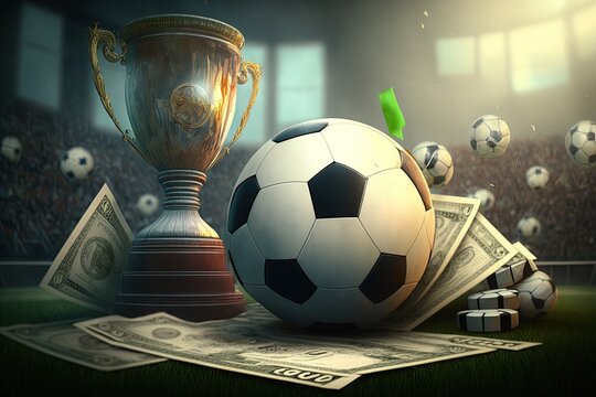 Betting, Footbal ball and cup with packs of dollar on football a