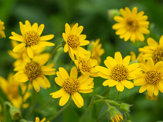 Arnica or Balsamroot flowers in beautiful  meadows.  Seattle. Washington. United States of America.