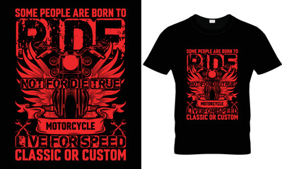 Vector t-shirt design with biker motorcycle, wings on black background. Fashionable print for fabric, men clothing, hoodie, jacket. T shirt template with lettering Live to ride, harley life style.