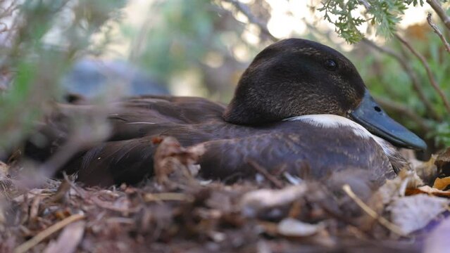 Close up of an American Black duck on a murky river