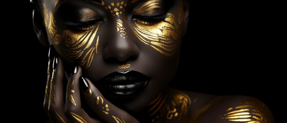 Close up on a african american woman with golden abstract painting