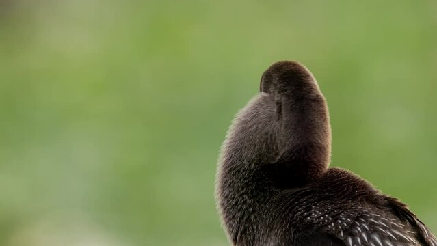 Close-up of an American darter (Anhinga anhinga) perched on a tree