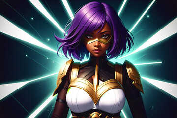 Female african american superhero. Portrait of black woman n fantastic costume and a super hero mask. Generative AI.
