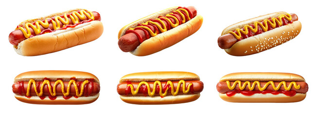 Set of Hot dogs with ketchup and mustard, isolated on a white background. Isolated on a transparent background. PNG format for graphic design.
