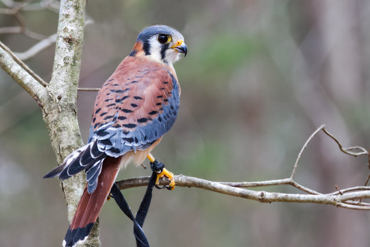American Kestrel Falco sparverius sat on a branch in fall autumn in the woodland forest