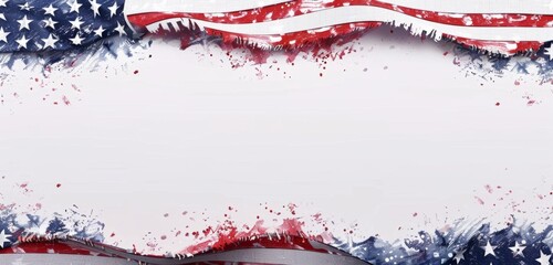 American flag background with white stars and red stripes on top, a horizontal border made from vertical lines in dark blue color at the bottom edge of the banner Generative AI