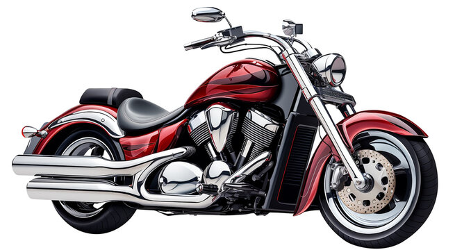 Classic american chopper motorcycle silhouette with detailed engine and chrome accents on a white background