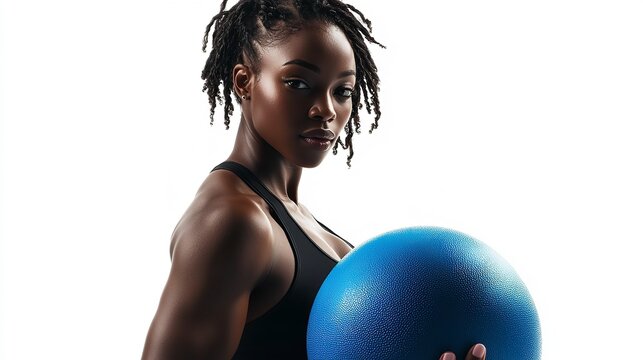 Stylish beautiful african american woman in a blue luxurious dress sits on the beach.Ai generative