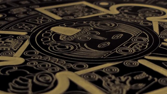 ancient Mayan astrological calendar rotating and showing signs, symbols and numbers