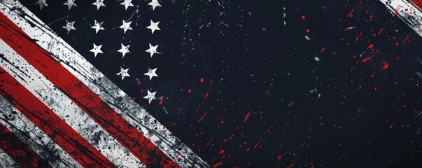 Dark blue background with red and white stripes of the American flag, creating an american theme for banner or web design template Generative AI