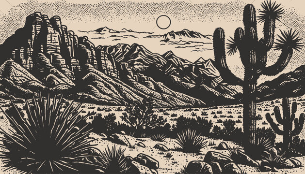 Desert adventure. Mountain graphics print artwork. Feel the sunset design. Cactus wild. Desert vibes vector t-shirt design. Desert dreaming vector. Road trip by car.