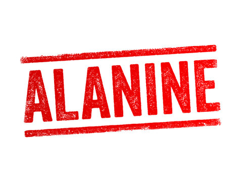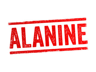 Alanine is an amino acid that is used to make proteins, text concept stamp