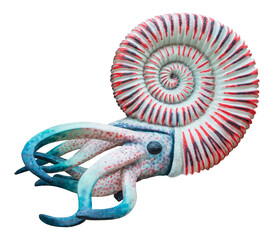 Ammonites lived during the periods of the Jurassic and Cretaceous. Ammonoids isolated on white background with clipping path