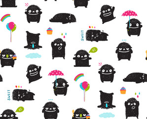 Funny hand drawn monster children pattern design.