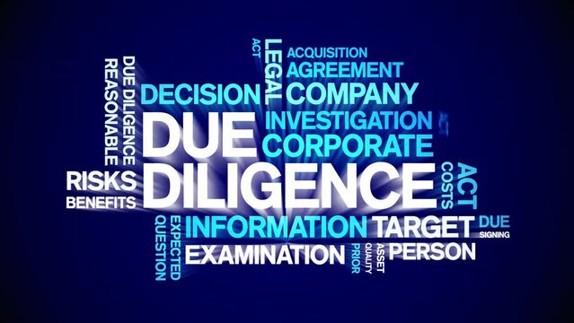 Due Diligence animated tag word cloud;text design animation kinetic typography seamless loop.