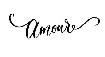 Elegant calligraphy word amour in romantic French inspirational style for wedding and home decor