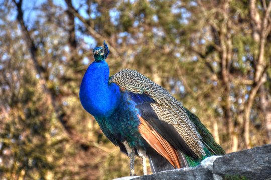 Pfau, Fasan, blau, blauer Pfau, Vogel, Ziervogel, Federn, Federkleid, Kopfschmuck, Schleppe, Federkrone, Balz, Schwanz, Schwanzschleppe, stolzieren