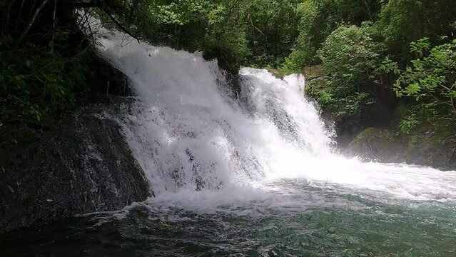 The nation flag of The United States consists of thirteen horizontal stripes, alternating red and white and 50 stars waving in the wind with highly detailed fabric animation background. 4K video