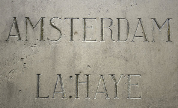 Amsterdam typography text or slogan. Wavy letters with grunge, rough texture. T-shirt graphic with ripple or glitch effect. Abstract print, banner, poster, emblem design. Vector illustration.